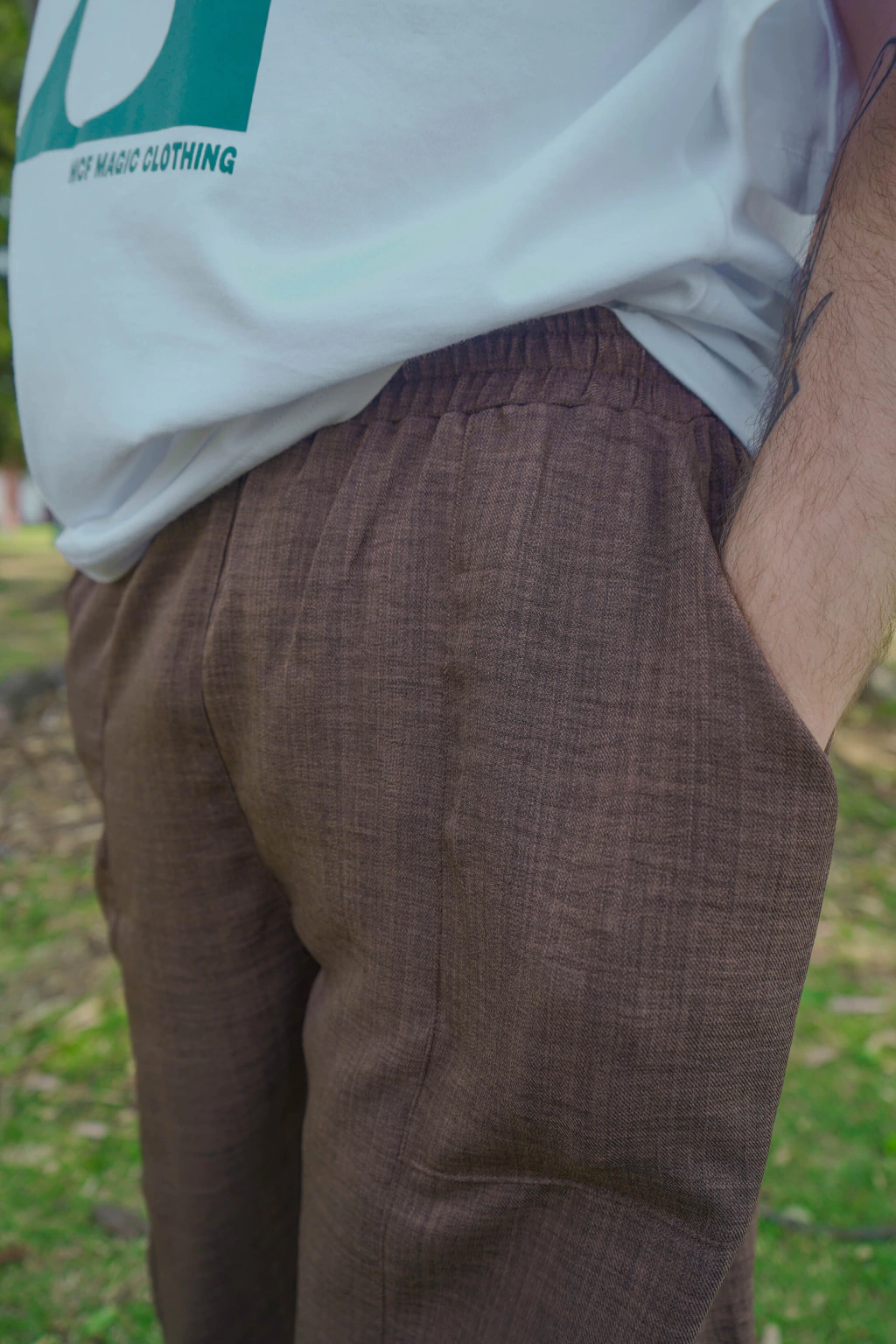 Con cintura elastica, recorte delantero y claro que bolsillos grandes.